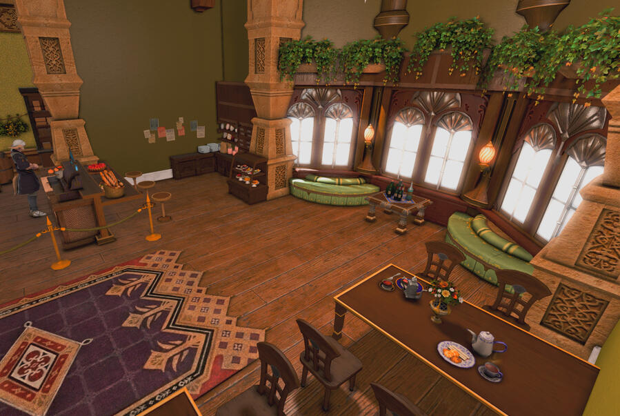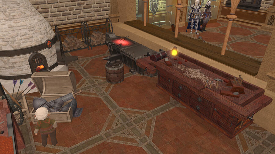 Upstairs in the estate is a functional workshop, making custom orders for adventurers and selling their stock. Whether it be a new set of armor, an upgraded weapon, or potions for the road, Aetherveil is equipped to keep their adventurers prepared for the next expedition.