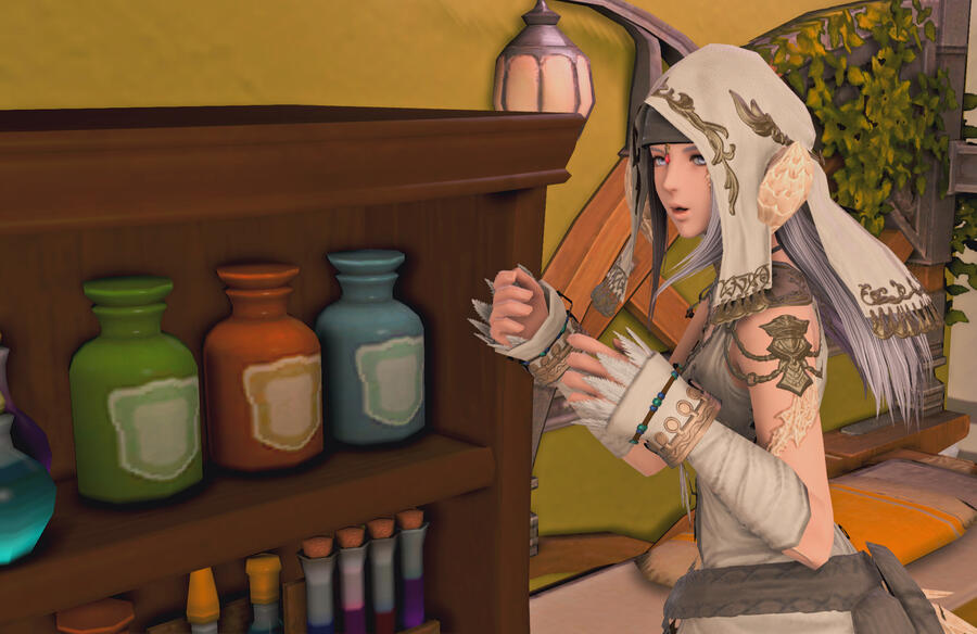 The walls would shift and move without warning as if they had a mind of their own. Eventually, a being resembling a hyur revealed itself to be the consciousness of the house. It would warn the staff of strange happenings before they occurred, such as the sudden appearance of a tiny portal to the void that appeared in the basement. It grew quickly until a giant beast from the void attempted to claw its way through the portal. Or the time that staff found a mysterious plant to study -- and with it a virus that sent the visitors into a paranoia frenzy. Unidentified plants were blacklisted from the premises after that particular event.After some years of the Esper Care estate, the staff decided that there were many things to be found beyond the walls of their home. It was time to become a Free Company of adventurers and see what else the world had to offer.